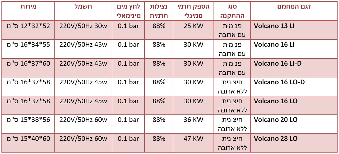 ל Volcano מגוון רחב של מחממי מים בהספקים וגדלים שונים, בעיצובים שונים ולכל סוגי ההתקנה.
